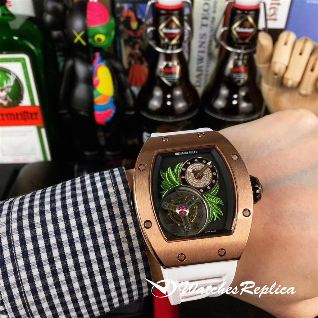 Richard Mille Richardmille RM19 « à court terme » fait référence au fait que l’apparence des choses est très courte et éphémère. L’autre sens est d’apprendre à apprécier et à chérir de belles choses. Si vous pensez que les fleurs sont immobiles, vous avez très tort. La conception de cette fleur de magnolia est la même que celle d’origine à 7 heures. Cinq pétales sculptés et peints sont utilisés dans les étamines de fleurs. Appuyez sur le bouton à 9 heures et la fleur de magnolia fleurira lentement et se fermera selon les besoins. Quand il s’ouvre et se ferme, il a la beauté vive et dynamique de « Flash in the Pan ». Ceinture en caoutchouc importée avec du verre saphir de mouvement importé est adoptée.