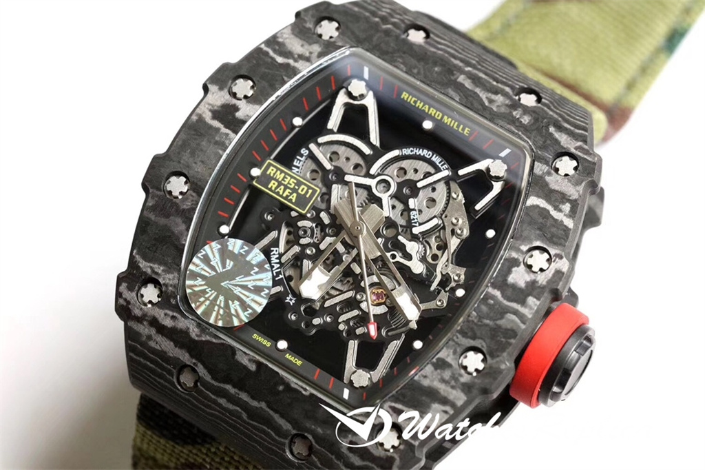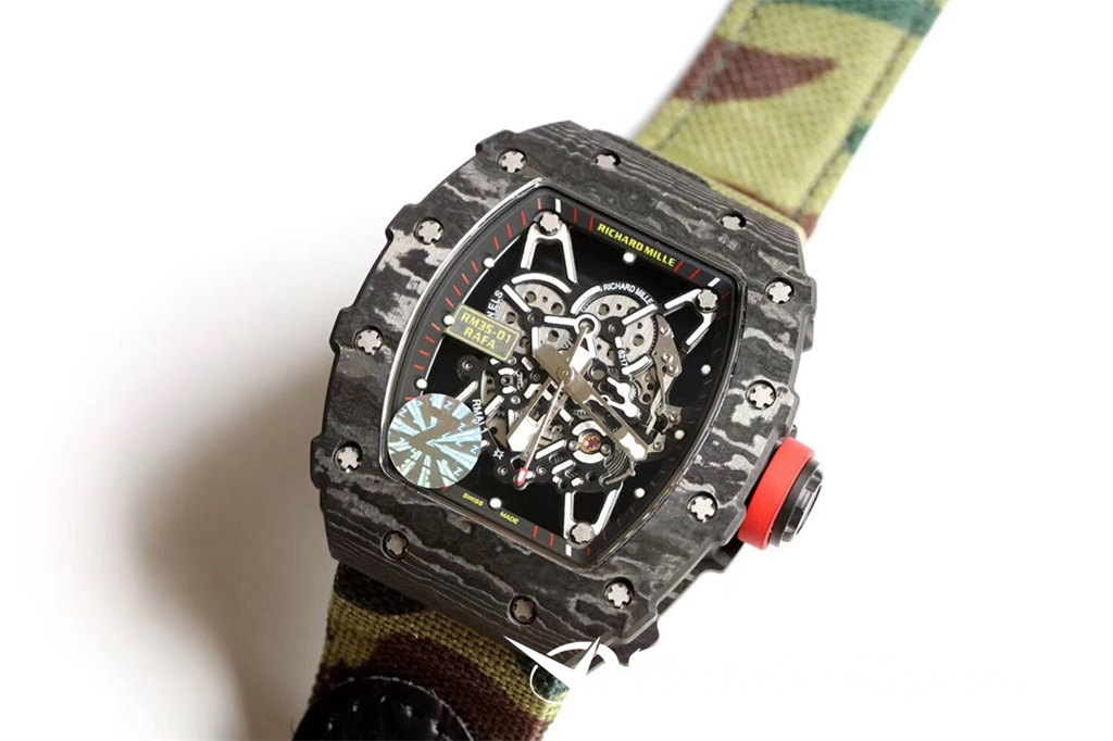 Richard Mille RM35-01 Série de fibres de carbone complète Z Factory Chaque coquille est toutes faite à la main avec une texture, et chaque coquille a une texture différente! Caractéristiques: 1: Ce boîtier de réplique et le couvercle inférieur utilisent un matériau de fibre importé à haute densité 2: Le fond du boîtier en fibre de carbone et les deux côtés de la doublure en titane sont traités par CNC synchrone! Il n’y a pas d’écart entre le haut et le bas et les côtés gauche et droit de la coquille. Une fois le test d’eau testé à la pression 4pa, il atteint 100% et passe le test étanche 3: la sangle est faite de matériau en caoutchouc pur importé de la Malaisie, ce qui le rend super dur et doux, il estime que la bande de surveillance dédiée RM la plus forte sur la bande de surveillance RM sur le Le marché peut être échangé avec le produit d’origine. 4: Selon le principe d’origine, le matériau en titane est utilisé comme réservoir intérieur et la technologie de coupe de précision électrique de pointe est utilisée! Le mouvement adopte un mouvement automatique Seiko importé. 5: Les caractères en bas du boîtier utilisent la technologie de gravure de précision à ultrasons la plus pointe, de sorte que le bas de la montre montre une texture noble. 6: Le verre adopte le cristal saphir de dureté la plus élevée sur le marché. !