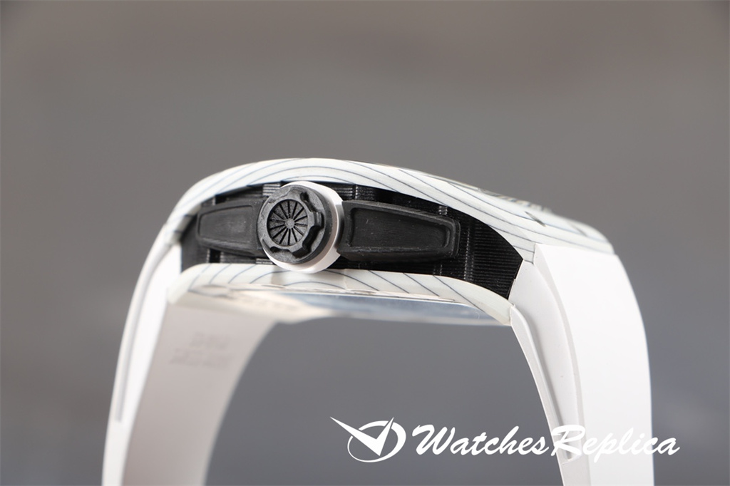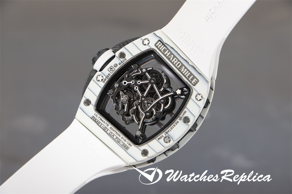 Richard Mille-Full Carbon Fibre « RM 61-01 Ultimate Track » Transmet la puissance et la vitesse, tout en poursuivant les avantages de la super-lumière et de la résistance à un super impact. La longueur maximale du boîtier est d’environ 51 mm, de largeur 42 mm et d’épaisseur de 15 mm; Le cas de conception asymétrique permet à l’étui de s’adapter au poignet de plus près sans friction avec le poignet pendant l’exercice intense comme le sprint; Le nouveau travail utilise de la fibre de carbone et du quartz en fibre, dans le processus de fraisage et de tournage, le boîtier formera une texture naturelle et unique, donc chaque montre est unique. Le protecteur de la couronne en fibre de carbone peut empêcher que la couronne soit endommagée pendant les sports. Le cadran entièrement ouvert est équipé d’une grande disposition à trois mains. Deux ponts incurvés traversent le cadran et transportent la structure du mouvement. De l’avant du cadran, vous pouvez observer directement les deux barils et le train d’enroulement. Le mouvement est évidé sur une grande zone. Frais.