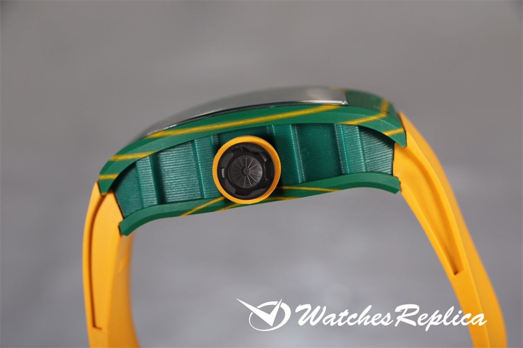 Le cas de 1 L’affaire Watch est une nouvelle interprétation de l’étui préféré en forme de baril de Richard Mille, et c’est aussi une interprétation innovante. La forme allongée du boîtier entre 2 heures et 5 heures est incroyable, ce qui évite la friction entre la couronne et le poignet et conserve l’excellent confort de porter. Le diamètre est de 51,10 x 43,10 x 15,20 mm, et le matériau est en composite de fibre de carbone TPT. Ce matériau est fort, léger et durable.