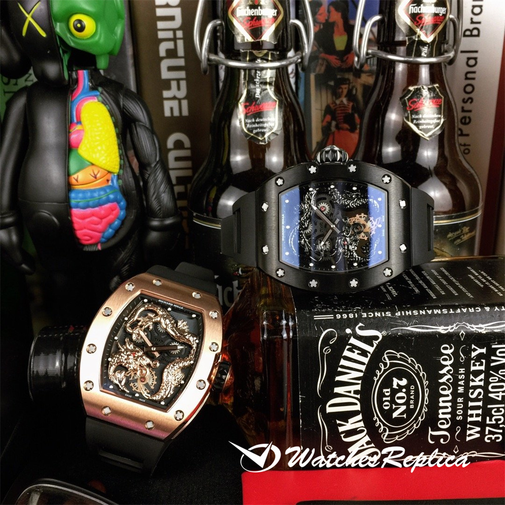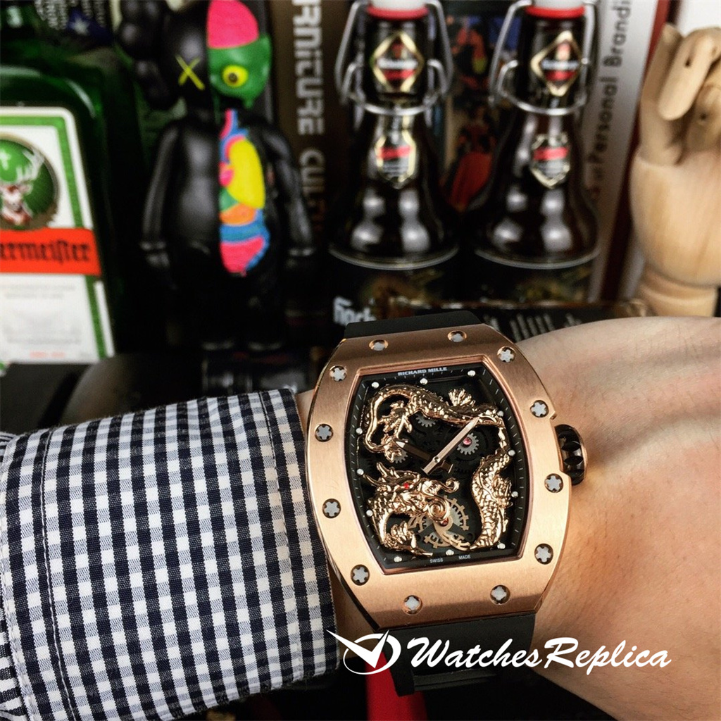 Richard Mille RM57-01 « Jackie Chan Series » Dragon Watch. Les totems Dragon et Phoenix réalisants à l’intérieur du mouvement sont construits en 3D, complètement sculptés à la main et creusés, ce qui condense beaucoup d’efforts des maîtres. Équipé d’un mouvement mécanique importé d’origine, 50m Taille de la coque imperméable 44×50 mm. La conception de figurines Metal Dragon est dominatrice et éblouissante, et gagne avec succès le cœur de nombreux amateurs de montres pour créer un monde de surveillance qui ne se limite pas au courant dominant.