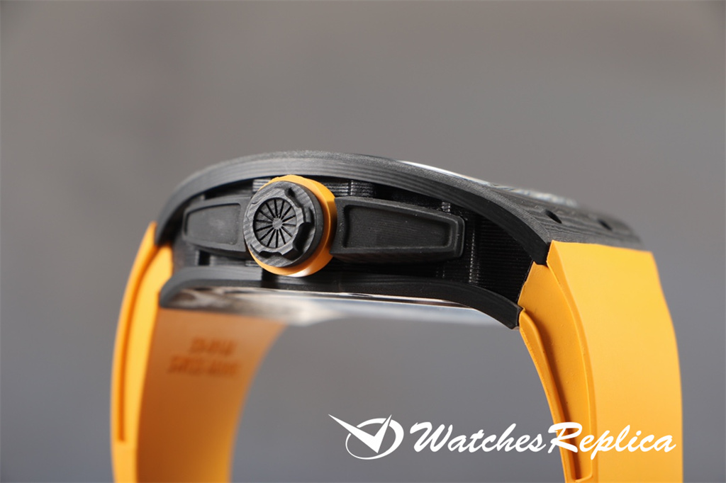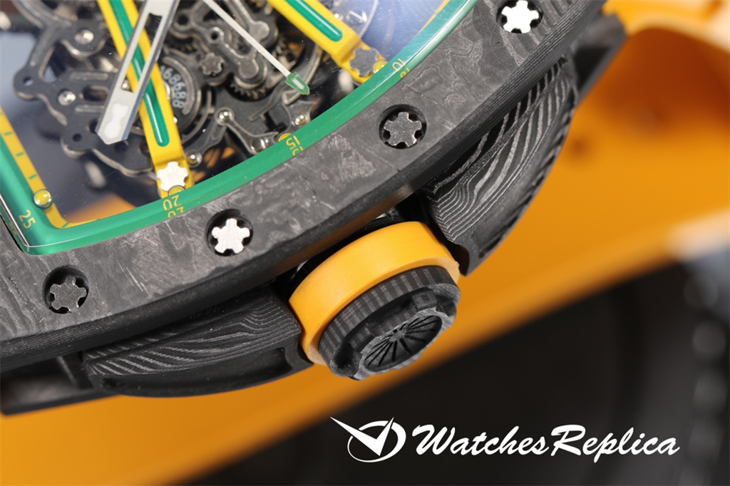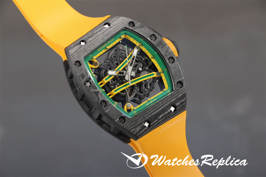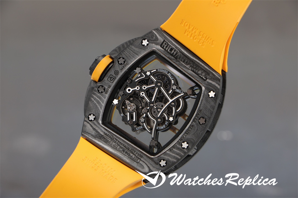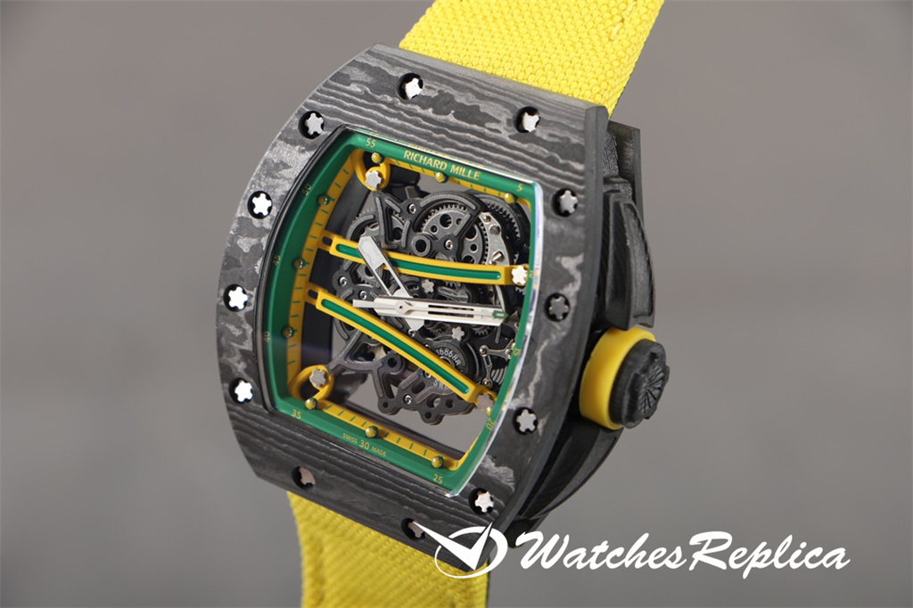 Richard Mille-Full Carbon Fibre « RM 61-01 Ultimate Track » Transmet la puissance et la vitesse, tout en poursuivant les avantages de la super-lumière et de la résistance à un super impact. La longueur maximale du boîtier est d’environ 51 mm, de largeur 42 mm et d’épaisseur de 15 mm; Le cas de conception asymétrique permet à l’étui de s’adapter au poignet de plus près sans friction avec le poignet pendant l’exercice intense comme le sprint; Le nouveau travail utilise de la fibre de carbone et du quartz en fibre, dans le processus de fraisage et de tournage, le boîtier formera une texture naturelle et unique, donc chaque montre est unique. Le protecteur de la couronne en fibre de carbone peut empêcher que la couronne soit endommagée pendant les sports. Le cadran entièrement ouvert est équipé d’une grande disposition à trois mains. Deux ponts incurvés traversent le cadran et transportent la structure du mouvement. De l’avant du cadran, vous pouvez observer directement les deux barils et le train d’enroulement. Le mouvement est évidé sur une grande zone. Frais.
