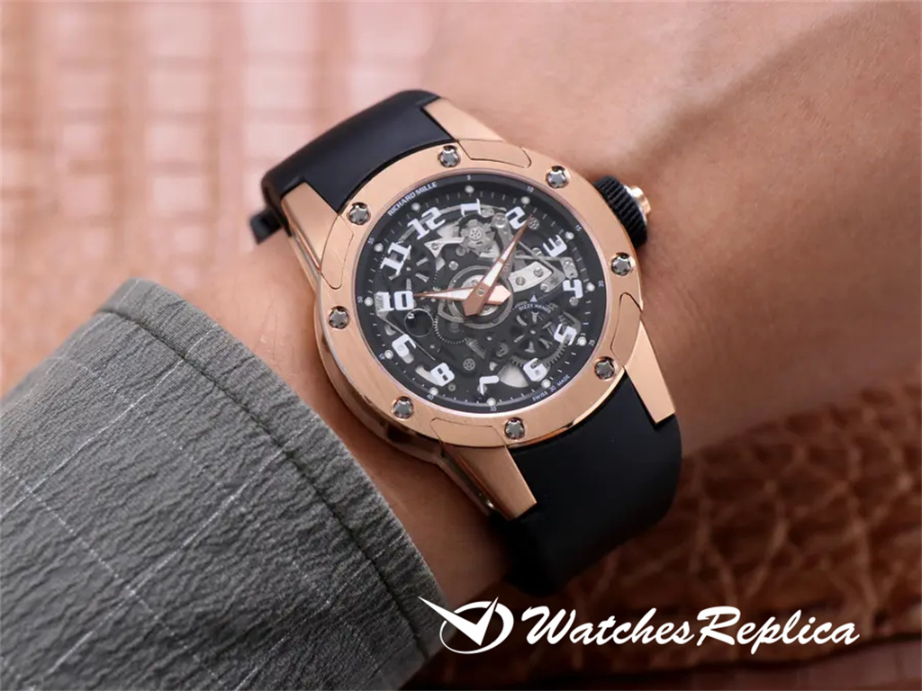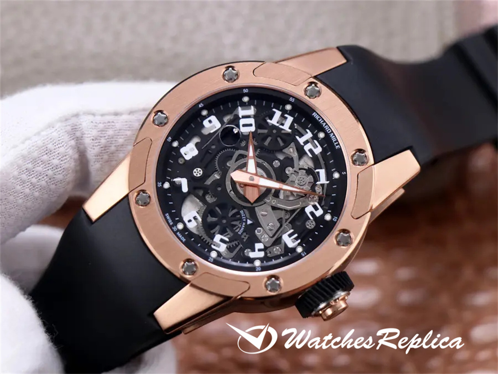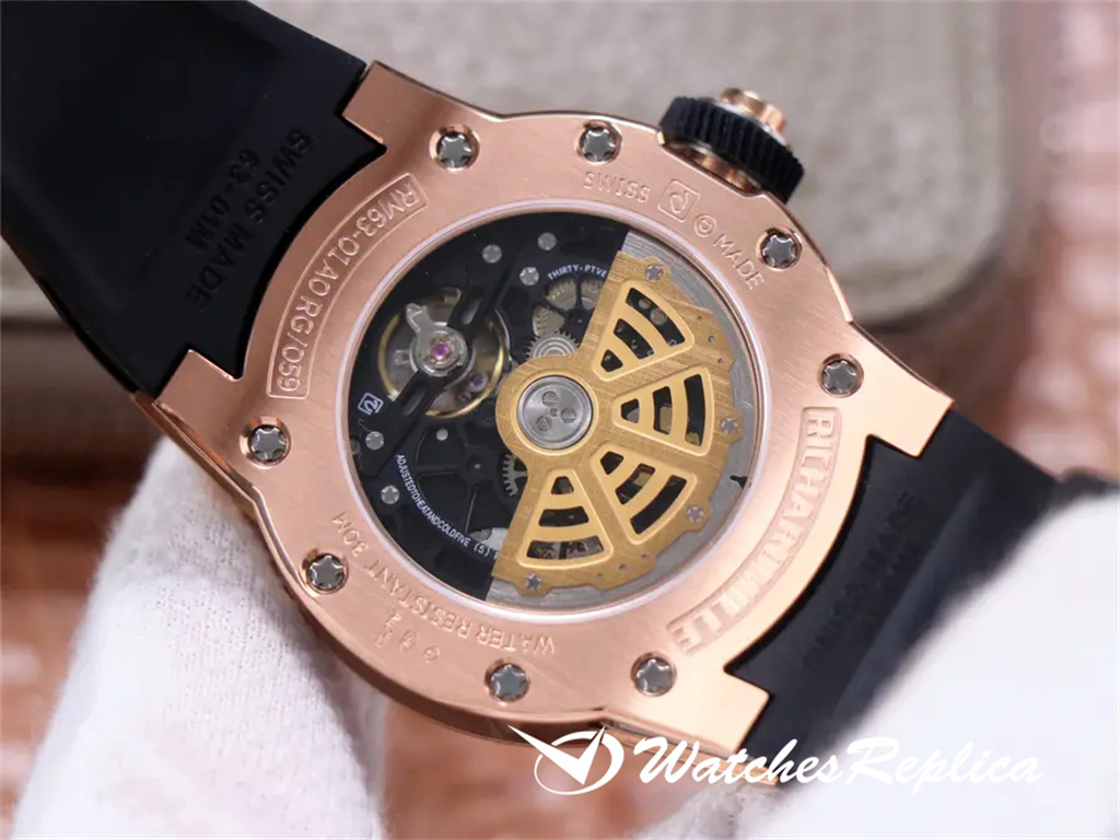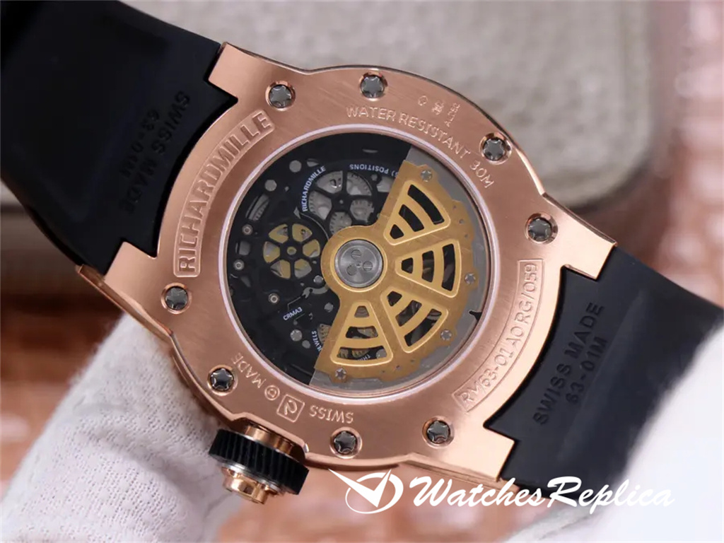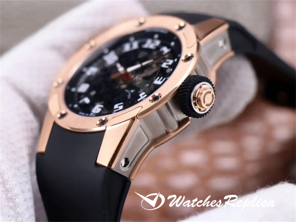 Richard Mille New RM 63-01 Dizzy Hands Mente mécanique automatique des hommes. Le nouveau modèle à la fin de 2019 est une pièce ronde relativement rare dans la famille RM Watch. La taille d’origine est de 42,7 mm de diamètre et de 11,7 mm d’épaisseur. CRMA3 personnalisé Mouvement mécanique entièrement automatique, la structure littérale ouverte est presque la même et elle est pleine de sensations mécaniques. Les quatre oreilles et pieds crus peuvent être démontés séparément comme l’original. L’avant et l’arrière de l’étui sont en or rose et ils sont fixés par 8 vis d’emblématique. Le polissage brossé en satin correspond bien aux bords arrondis et aux coins des pattes. Le miroir et le cadran sont des cristaux de saphir transparents. Le verre littéral est imprimé avec 12 marqueurs d’heure en chiffres arabes. Les mains en forme d’épée et minutieuses sont également finement brossées et polies avec des détails de bord tridimensionnels. Ceinture en caoutchouc de matière première thaïlandaise importée, excellente fabrication, douce et facile à utiliser. Raisons de démarrage: