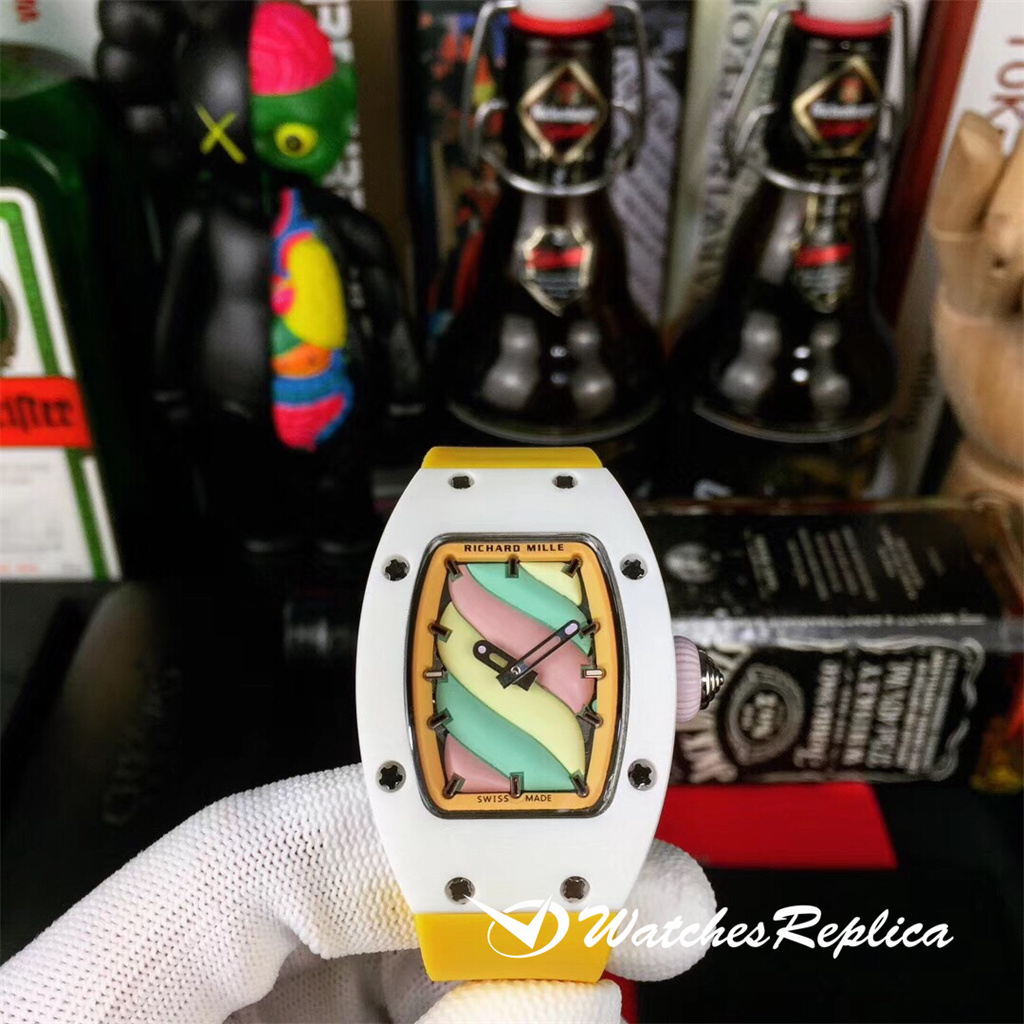 Richard Mille Richardmille Candy Marshmallow La dernière série de bon Bon, la plus chaude est l’œuvre la plus rare! Surmonter l’artisanat traditionnel et casser le modèle! L’une des technologies les plus respectées des montres. Tout le monde ne fait pas la dot, les courbes et les couleurs de mouvement de guimauve, ils sont séduisants. Avec Richard Mille, il est possible de porter des barbecues en coton sur votre poignet! Avec la céramique blanche et le cadran en émail vert rose jaune, les couleurs douces de RM-07 créent une combinaison … Sweet! Un voyage dans un magasin de bonbons, une œuvre d’art incroyable. Voulez-vous le porter