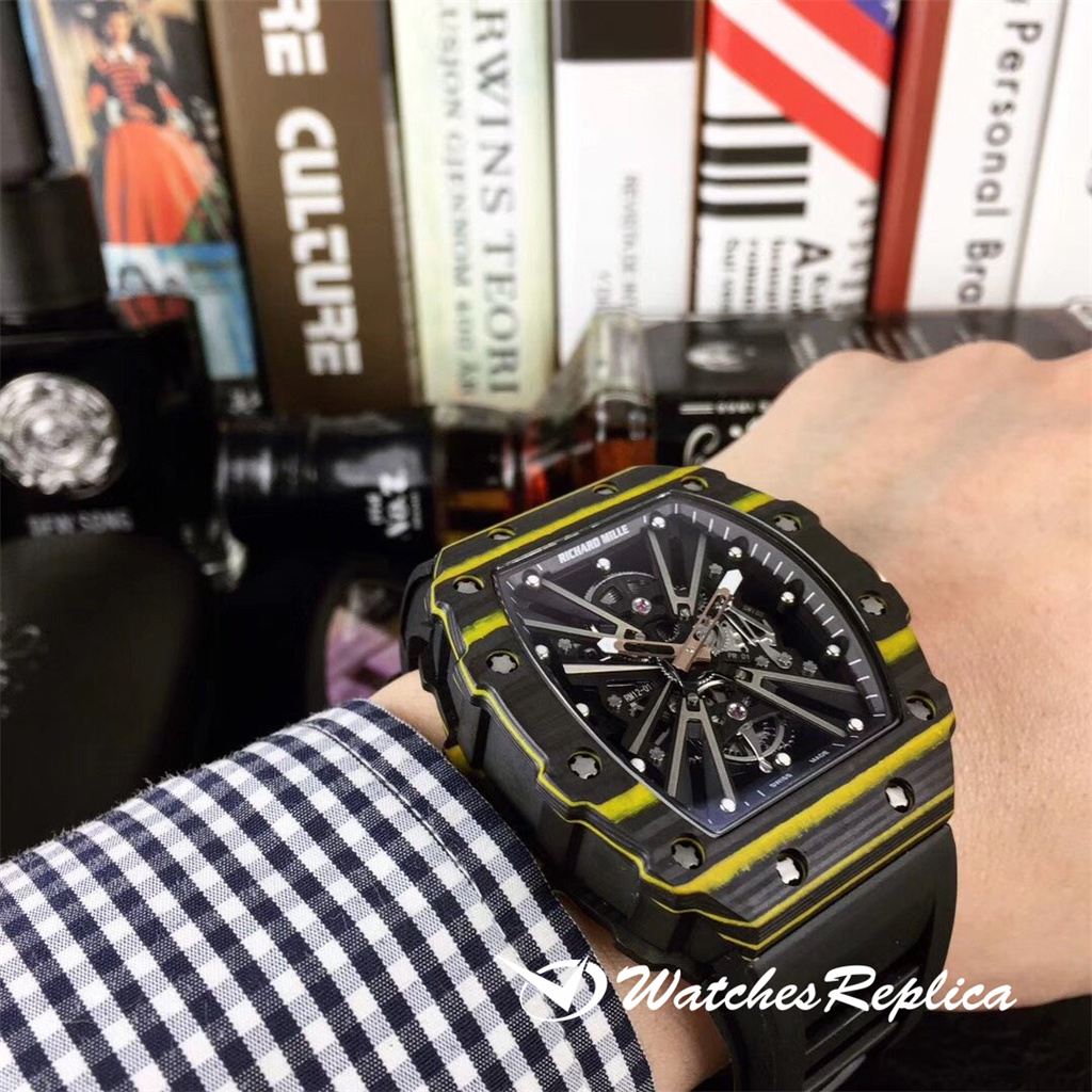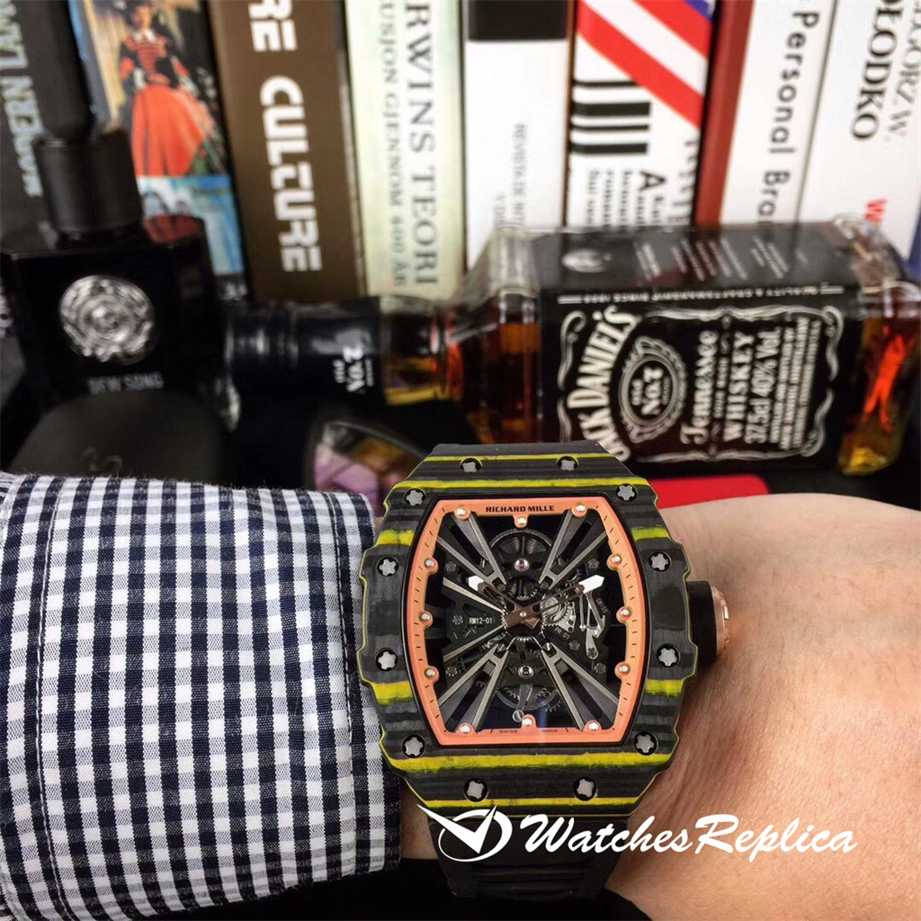 Richard Mille Richardmille RM12-01 est une montre très contemporaine, présentant directement le mouvement du pont mécanique entièrement automatique importé crené Le matériau composite en fibre de carbone TPT est toujours utilisé pour la coulée, ce qui convient aux personnes qui agissent discrètes et poursuivent l’individualité. La nouvelle édition spéciale RM12-01 est publiée en quantités limitées! ! !