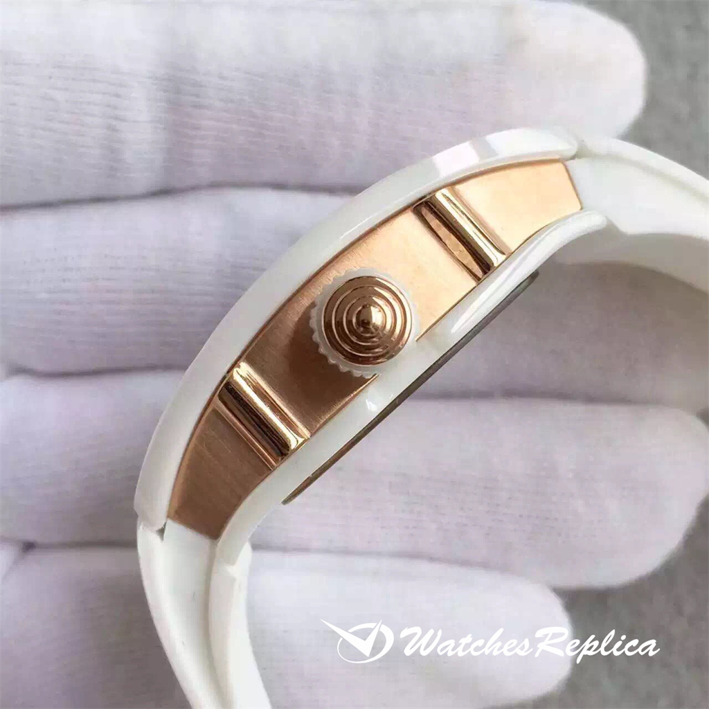 Richard Mille RM 07-01 Médies Machines automatiques importées, longueur 45,66 x largeur 31,40 mm, matériau féminin: Fréquence de vibration en céramique ZTA coréenne: 28800 Oscillations par heure Nombre de gemmes: 25 Réserve de puissance: 50 heures Épaisseur du boîtier: 11,85 mm de cas Matériel: ZTA Céramique Gold Material Couleur: Cadan Black Forme: Autre Table Miroir Matériau: Sapphir Crystal Glass Crow Material: ZTA Céramique Gold Material Retour: Retour à travers la profondeur étanche: 50m