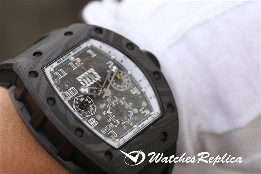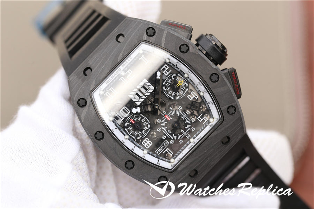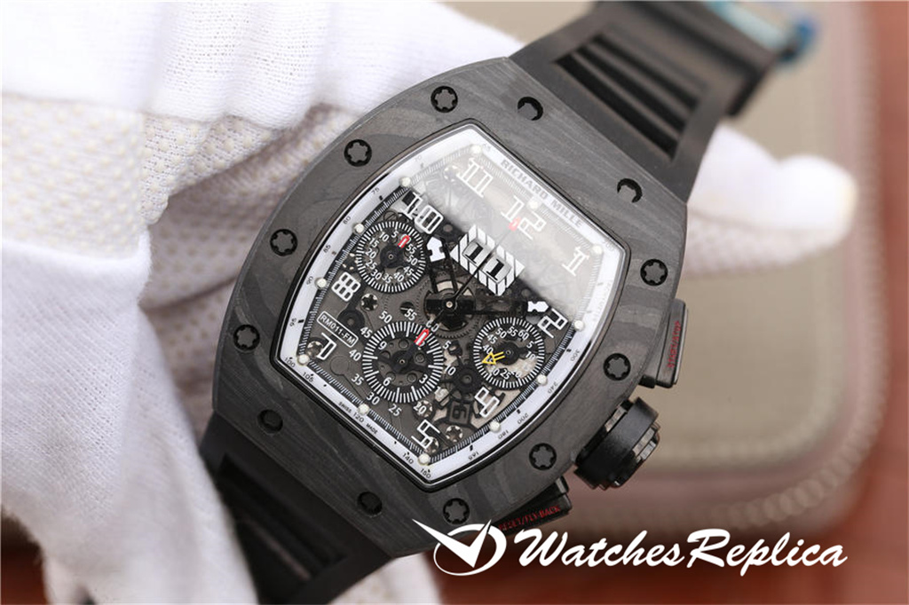 Richard Mille RM011 La montre masculine est faite de fibre de carbone forgée comme la fabrication originale et exquise, forte, texture et résistant à l’usure. Mouvement de chronographe mécanique automatique de Shanghai 7750, copier les données d’origine, ouvrir le moule, longueur 50 * Largeur 40 mm, original 1: 1 Structure en forme de tonnes, Matière en cristal: Verre en cristal saphir, STRAP MATÉRIAU: Rubber, fonction: Affichage de la date, Affichage du mois et timing. Pour restaurer le tempérament d’origine, un incontournable pour être riche et beau!
