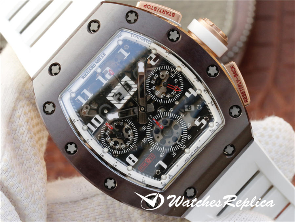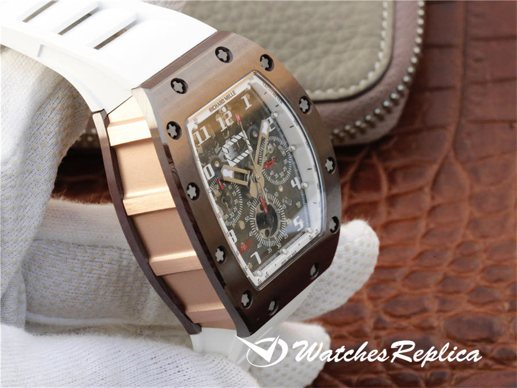 Richard Mille RM011-Silicion Nitride TZP Café Ceramic Special Limited Edition est une forte attaque contre le véritable boîtier en céramique importé coréen, le café Gold, le mouvement du chronographe automatique, taille 50 * 40 mm.