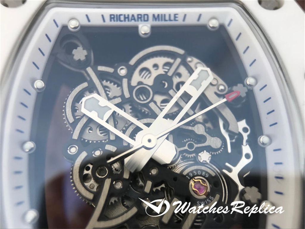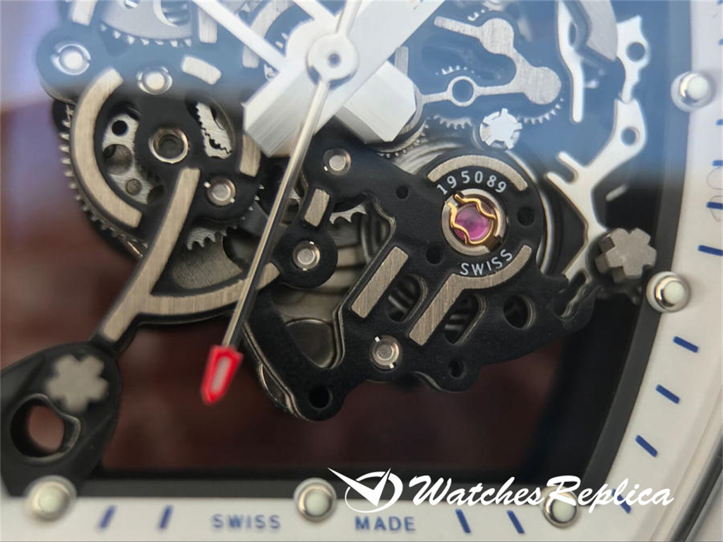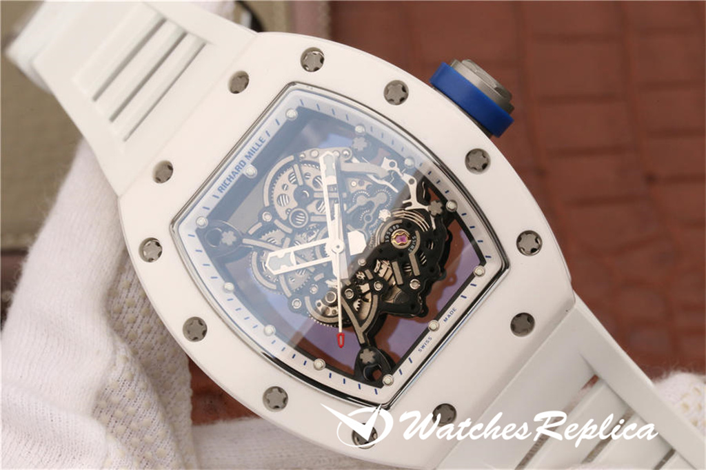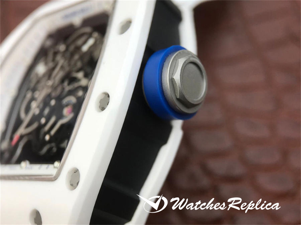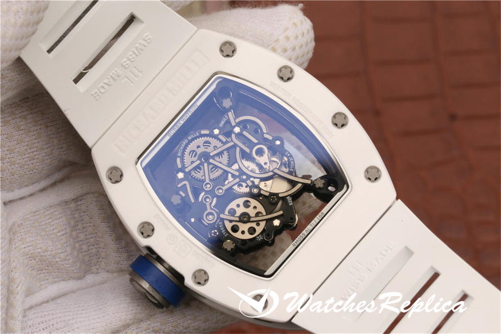 Richard Mille RM055 Ceramic Watch Classic Wine Barrel Forme Crempliaté Cremple Design, Shell Pannel et Couvreau inférieur sont en matériau en céramique trempé à haute résistance qui est plus difficile que l’acier et ne sera pas rayé par le port. La coquille du milieu de la marque est faite d’un cadran en céramique noir. Le cadran tridimensionnel creux est composé de pièces de vitesse. Les marqueurs de mains et d’heure sont tous des matériaux lumineux. Le temps peut être facilement lu même dans l’obscurité la nuit. Le miroir du saphir anti-glare est plaqué et la grande couronne est faite d’éléments de pneus de voiture. En caoutchouc L’anneau est facile à tourner et à régler. Le mouvement adopte les détails d’apparence originaux et cohérents. La sangle de sports blanches exquise a ventilé en caoutchouc avec une boucle de papillon.