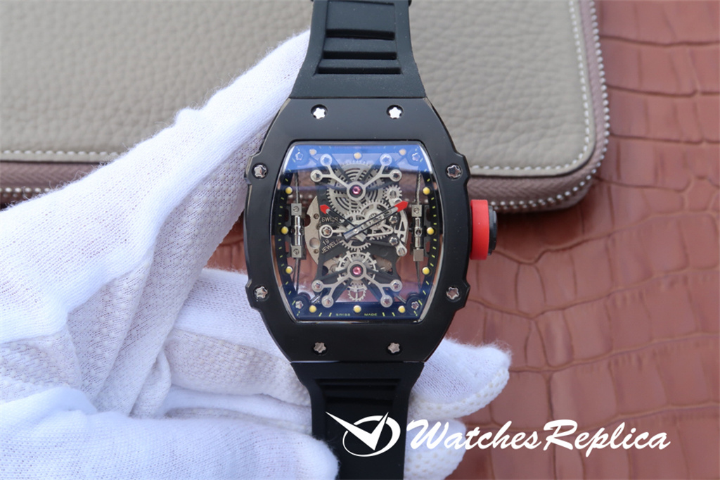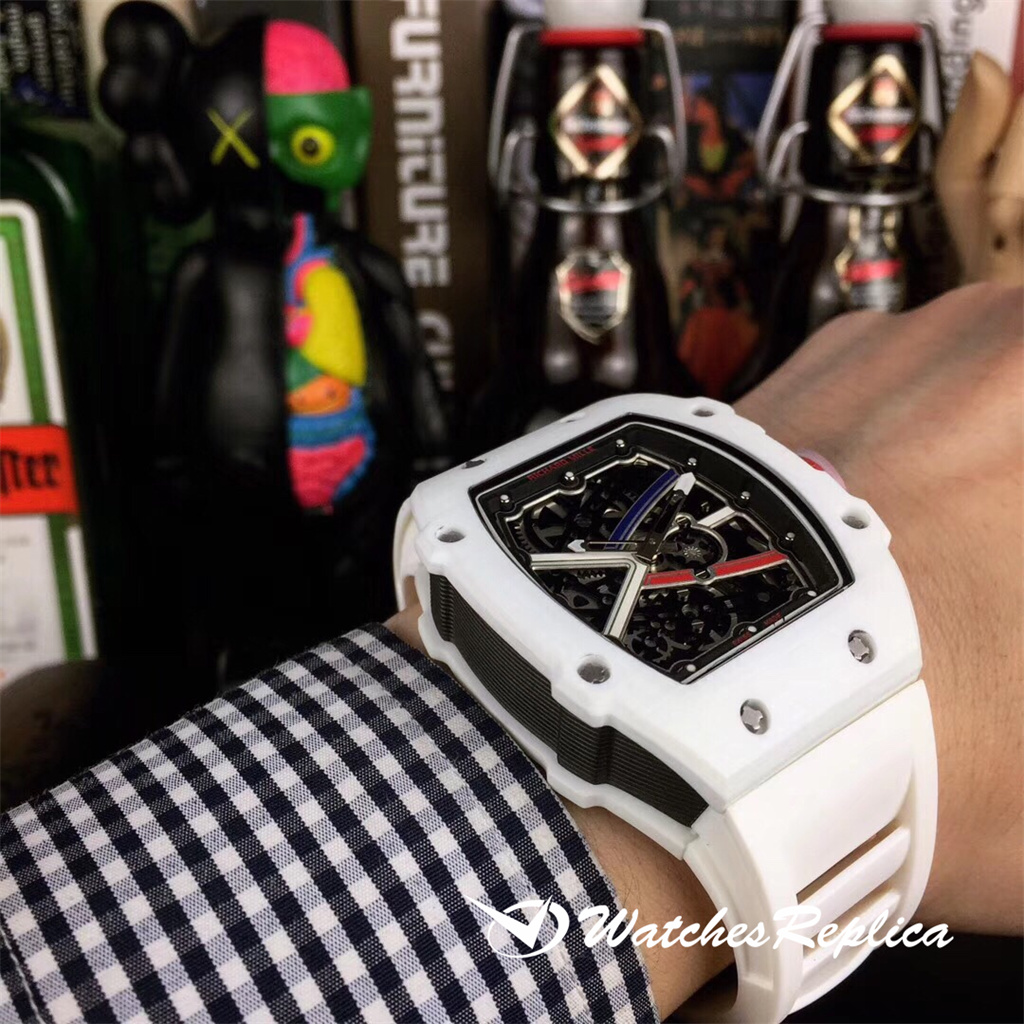 Richard Mille RM67-02 High Jump King Champion Model, The Barrel Case est fait de Richard Mille s Unique TPT Fibre de carbone et TPT Matériaux composites de quartz, tout en maintenant la légèreté et plus avec une excellente résistance à l’impact, 38,70 x 47,52 mm de diamètre, cadran creux, miroir saphir, dos transparent. Lorsque les Championnats du monde de Londres 2017 en athlétisme ont débuté, Richard Mille a créé un saut en hauteur RM 67-02 (saut en hauteur) pour l’ami de la marque (également reconnu comme le roi du saut en hauteur) Mutaz Essa Barshim. Cette montre est la marque que le charme se manifeste à nouveau: plus supérieure, plus légère et plus forte, ce qui en fait une autre montre de luxe sportive exceptionnelle de la marque, aussi légère que la deuxième peau, cette montre est gravée d’un nombre indépendant et » mutaz » Les mots donnent au porteur une identité et une signification commémoratives distinguées uniques!