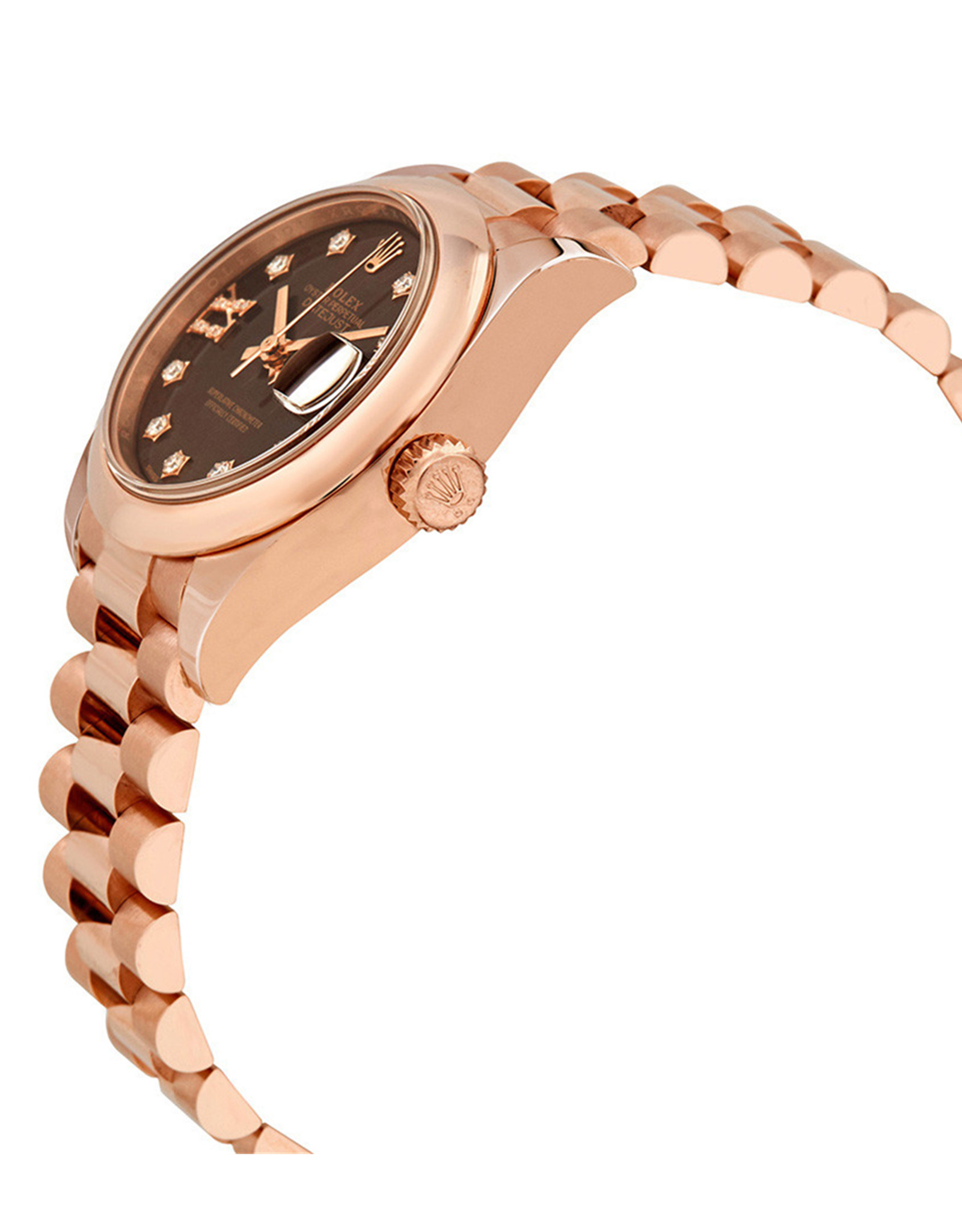 Rolex Datejuste Chocolate Dial 18K Everose Gold Président Automatique Ladies Réplique Montre 28MM