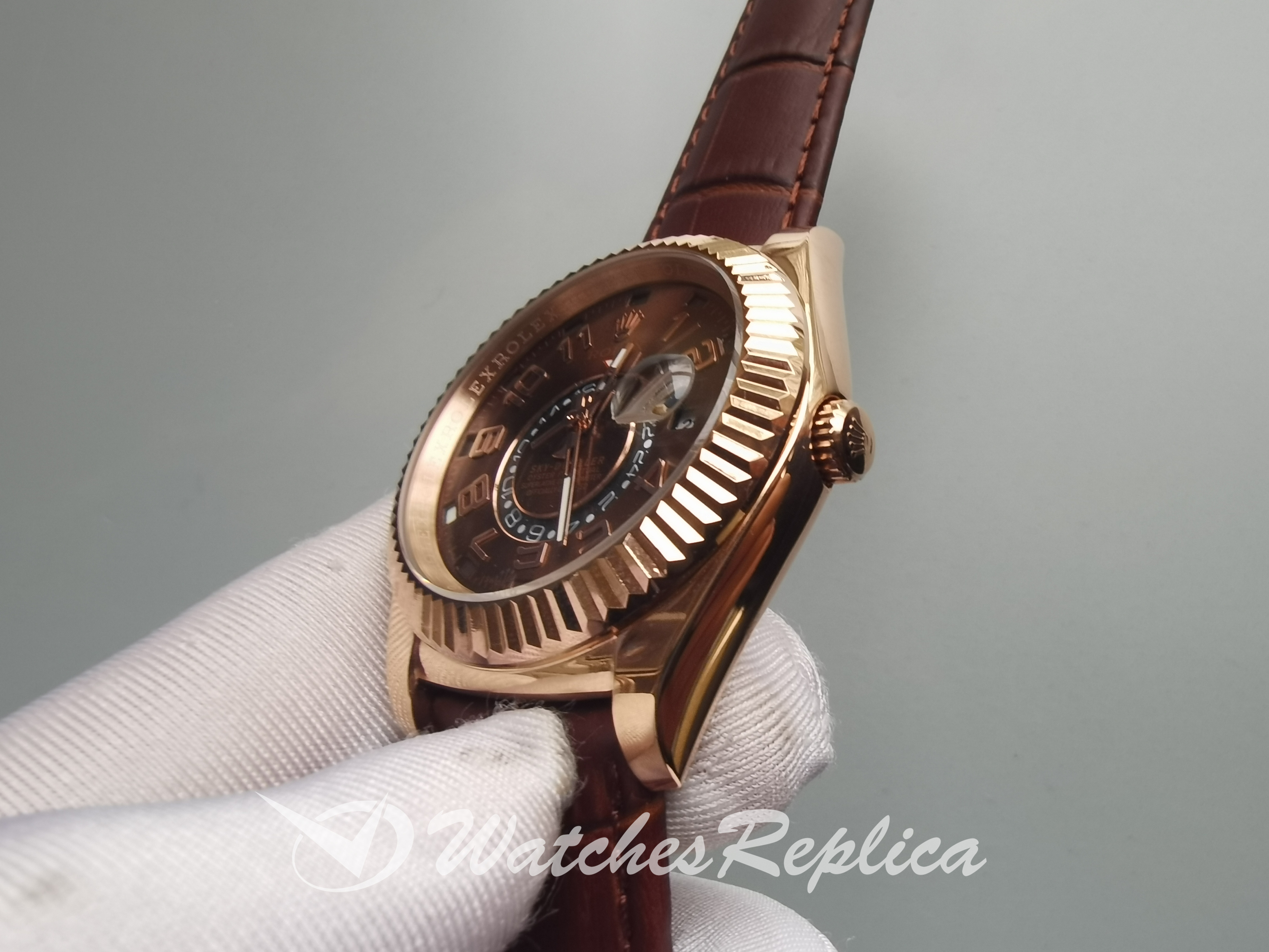Rolex Sky-Dweller 326135 42MM Crocodile brun et cadran marron chocolat pour Men Réplique Montre
