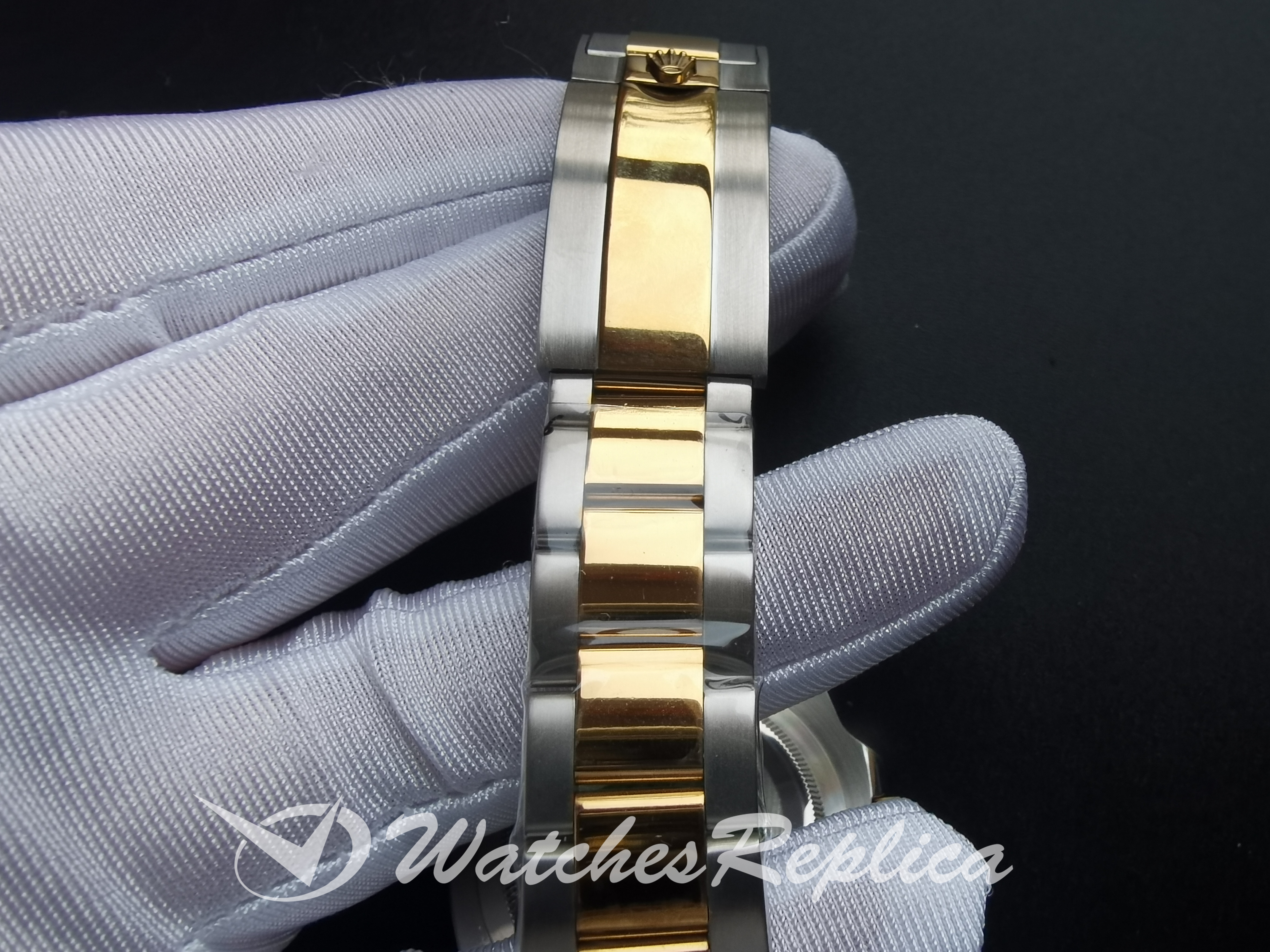 Matériau du bracelet: ROSEUR 18K solide or jaune avec une huître en acier inoxydable 904L Brossé 904L